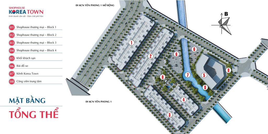 - Dự án Korea Town tọa lạc ngã tư Ấp Đồn, Xã Trung Yên & Yên Hòa, Huyện Yên Phong, Tỉnh Bắc Ninh, nằm sát cạnh khu công nghiệp Yên Phong.