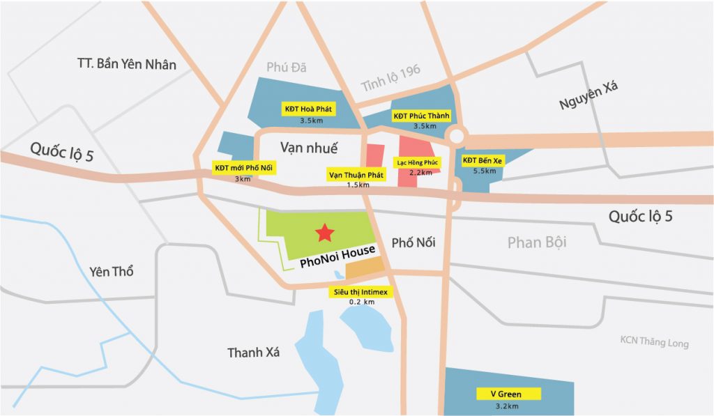 - Phố Nối House Hưng Yên tọa lạc ở vị trí kim cương giữa 4 khu công nghiệp lớn của tỉnh Hưng yên là KCN Phố Nối A, KCN Thăng Long 2,KCN Nghiệp Minh Đức, KCN Phố Nối B.