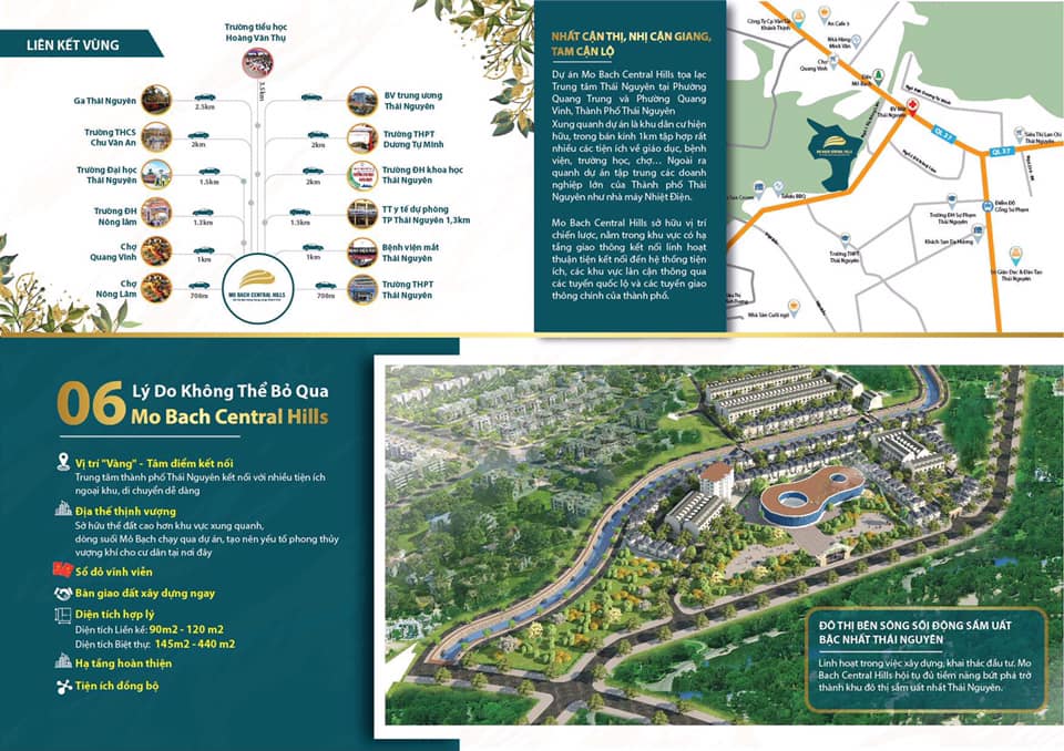 - Khác với nhiều khu dân cư khác tại Thái Nguyên, Mỏ Bạch Central Hill được quy hoạch hoàn chỉnh và đồng bộ về hệ thống giao thông cùng cơ sở hạ tầng, với đầy đủ các khu chức năng từ trường mầm non, nhà văn hóa, khu vui chơi dành cho trẻ nhỏ, vườn hoa, công viên cây xanh... đảm bảo sẽ mang đến một cuộc sống xanh an lành hoàn toàn mới mẻ và khác biệt tới người dân toàn tỉnh thành Thái Nguyên.