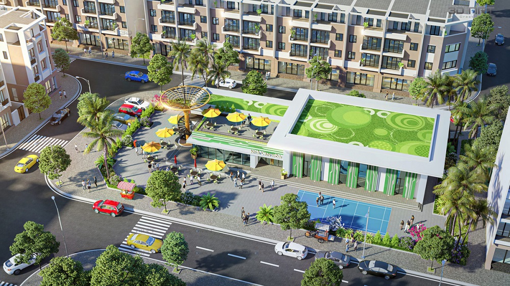 + Phía Đông Nam giáp quy hoạch khu dịch vụ, nhà hàng, bãi đỗ xe và cây xanh