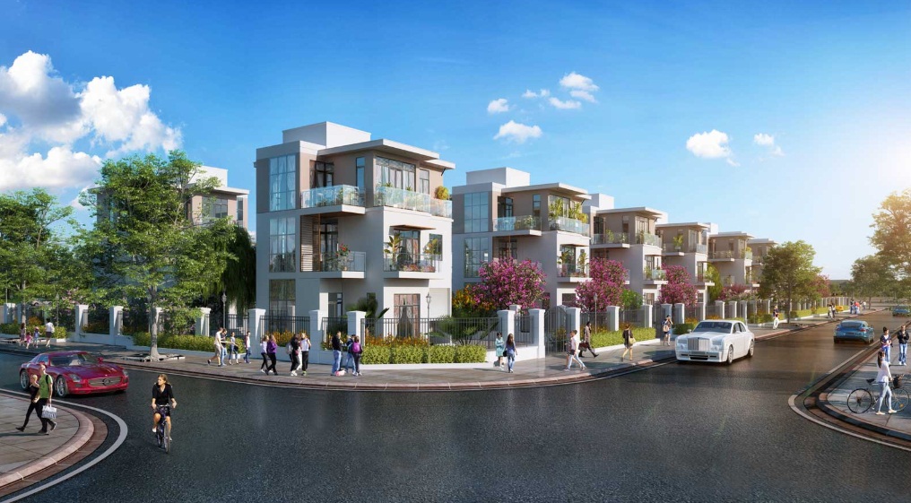 - Khu nhà ở biệt thự : bố trí dãy có mặt tiền quay vào các khu cây xanh, tạo không gian sống mở, hiện đại. Tầng cao trung bình 03 tầng, mật độ xây dựng từ 75%.